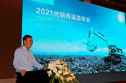 大會首先由日本神鋼建機(jī)株式會社尾上善則社長通過視頻向代銷商致新年辭。尾上社長向大家表達(dá)了新年的祝福并表示今年是中國“十四五”開局之年,也是神戶制鋼集團(tuán)中期經(jīng)營計(jì)劃的首年。在這承上啟下的關(guān)鍵一年,我們開始著眼于下一個100年并付諸行動。神鋼建機(jī)將回歸用戶現(xiàn)場主義的原點(diǎn),提供本公司特有的產(chǎn)品、服務(wù)、信息,以打造世界范圍內(nèi)具有存在感的全球品牌為目標(biāo)。期望與代銷商朋友一起加深信任,提升自我能力,努力打造一個新時代。