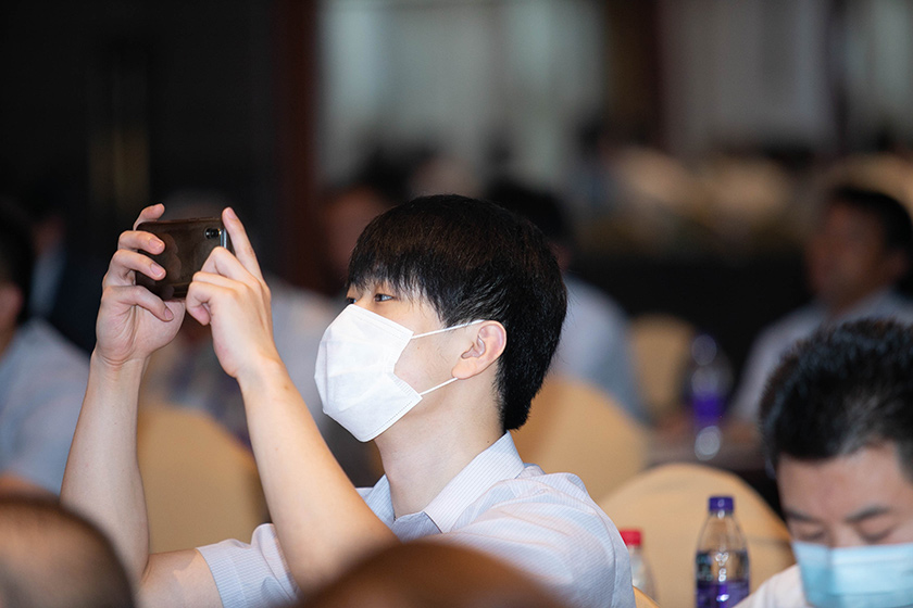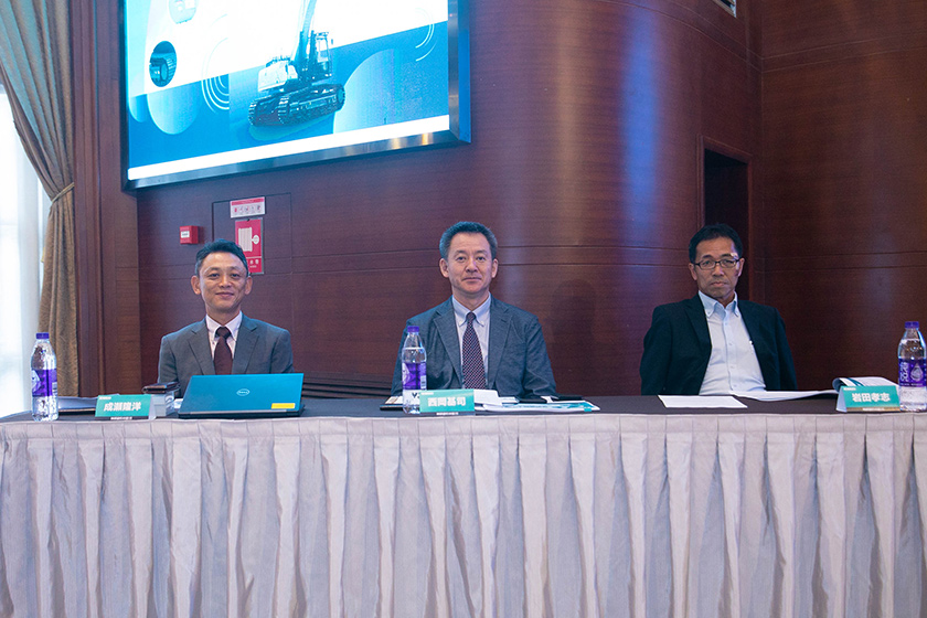 接下來市場統(tǒng)籌本部本部長巖田孝志先生在發(fā)言中分析了液壓挖掘機的市場走向,并表示目前神鋼占有率仍保持著較好的發(fā)展勢頭,而受疫情影響未能到場的全球生產(chǎn)管理控制(GPC)部長齋藤敬治先生也通過視頻連線發(fā)言,他分別對2021年上期和下期進行總結(jié)發(fā)言,并對全球總需求進行說明,也期待著明年能和大家面對面交流。