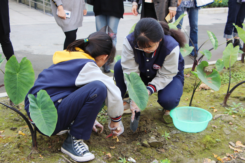 儀式前,來自全區(qū)的教育局代表和7家企業(yè)代表在校內(nèi)進(jìn)行了參觀,栽種、覆土,繪畫、陶藝……向陽橋中學(xué)豐富而有趣的課程吸引著在場(chǎng)的每一位來賓。