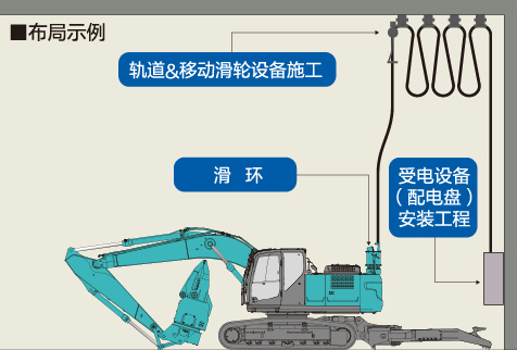 在配重上安裝專門用于引入外部電源的滑環(huán),機器無論向什么方向旋轉都不會發(fā)生電纜扭纏,